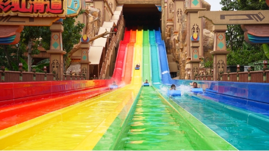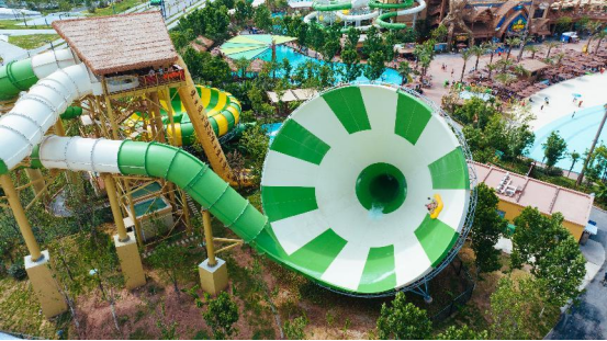 資陽(yáng)方特水世界是華強(qiáng)方特集團(tuán)以熊出沒(méi)大電影《熊出沒(méi)·原始時(shí)代》為創(chuàng)意背景獨(dú)家打造的大型合家歡水世界。全園共有17個(gè)大型特色水上項(xiàng)目及上百個(gè)特色景觀,其中多個(gè)項(xiàng)目榮膺國(guó)際行業(yè)旅游協(xié)會(huì)最佳水上設(shè)備獎(jiǎng),為游客提供獨(dú)一無(wú)二的差異化水上游樂(lè)體驗(yàn),滿足全年齡段游客需求?!洞罄取贰冻?jí)碗》《飛躍河谷》《翻江倒海》等解壓又刺激,《颶風(fēng)灣》《彩虹滑道》《叢林漂流》清涼值拉滿,還有《小喇叭》《小飛毯》《蹦蹦島》可供小朋友盡情嬉戲、歡樂(lè)玩耍。