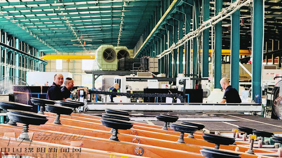 在四川富樂海??萍加邢薰拒囬g內(nèi),一臺(tái)巨大的鋼化爐正轟鳴作業(yè),一塊高達(dá)8米、寬3米的新型鋼化玻璃在爐膛中緩緩成型。展廳里,生產(chǎn)總監(jiān)蔣軍手持測(cè)溫儀,正在為來訪客戶演示新型建材的性能。