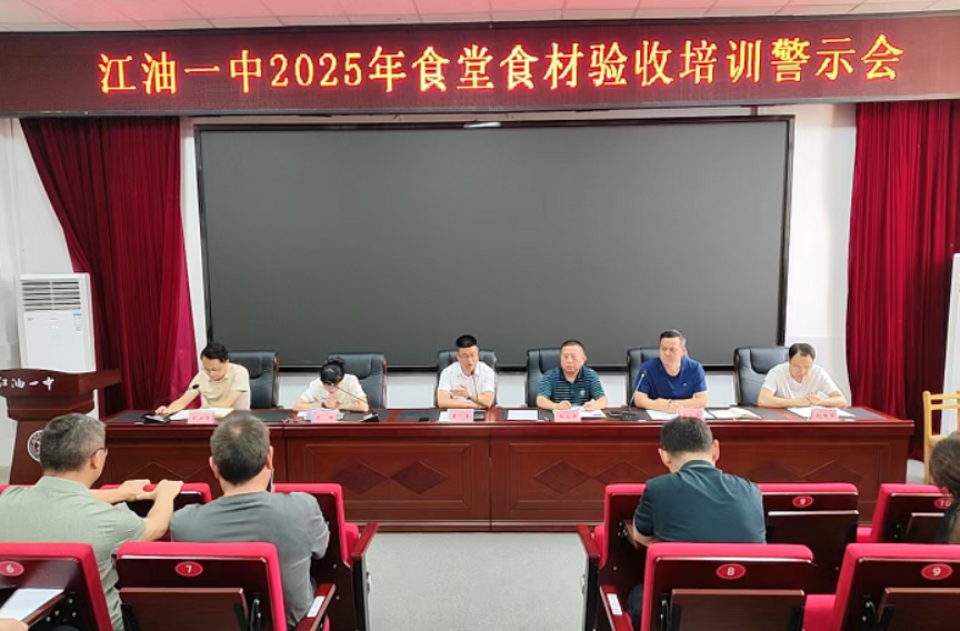 綿陽(yáng)新聞網(wǎng)訊 為了深刻吸取近期校園食品安全事件教訓(xùn),全面強(qiáng)化食材源頭管控,6月27日上午,江油一中在學(xué)術(shù)報(bào)告廳召開了以“筑牢舌尖防線”為主題的2025年食堂食材驗(yàn)收培訓(xùn)警示會(huì)。該校校長(zhǎng)董軍、副校長(zhǎng)楊永平、紀(jì)委書記王麗等校領(lǐng)導(dǎo),各處室負(fù)責(zé)人、食材收驗(yàn)人員及食堂各樓層班組長(zhǎng)參會(huì),共同筑牢校園食品安全首道關(guān)口。會(huì)議由總務(wù)主任何飛老師主持。