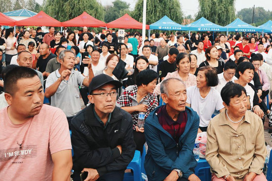 在遼寧彰武縣后新秋鎮(zhèn)燒鍋村文化廣場(chǎng),村民前來觀看歌手大賽。(受訪者供圖)