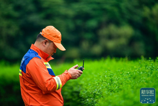 ↑7月1日,護(hù)林員在貴陽市長坡嶺國有林場通過無人機(jī)監(jiān)測林區(qū)情況。