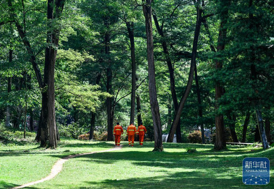↑7月1日,護(hù)林員在貴陽市長坡嶺國有林場巡護(hù)山林。