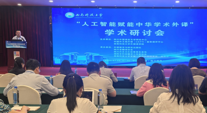 7月4日-6日,由四川外國語言文學研究中心、中國外文局開棣(CATTI)教育測評中心和西南科技大學外國語學院共同主辦,四川省翻譯協(xié)會、外語教學與研究出版社、四川歷史文化普及基地、西南科技大學學報(哲社版)等機構協(xié)辦的“人工智能賦能中華學術外譯”學術研討會于在中國科技城·綿陽順利舉行。來自復旦大學、西南科技大學、浙江理工大學、北京師范大學、南京郵電大學和上海理工大學等十余所省內(nèi)外高校以及外語教學與研究出版社、復旦大學出版社、浙江大學出版社、中華書局和安徽科學技術出版社等國內(nèi)一流學術出版機構的80余名專家學者和青年研究人員齊聚一堂,圍繞“人工智能時代中華學術外譯的新挑戰(zhàn)、新機遇和新發(fā)展”這一論壇主題,深入研討了技術賦能中華學術外譯的實現(xiàn)路徑、中華學術外譯項目的培育和申報實務等話題。