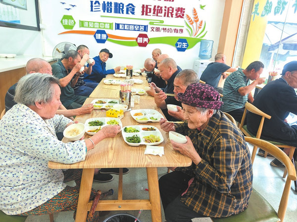 肉沫豇豆、辣椒炒肉、白油冬瓜、外加一碗紫菜湯,7月3日中午12時(shí)許,78歲的楊順昌像往常一樣,走進(jìn)位于花荄鎮(zhèn)羅林社區(qū)的“幸福餐廳”,享受午餐美好“食”光。“在家做飯花一上午時(shí)間,一頓吃不完下頓吃剩菜,現(xiàn)在樓下開(kāi)了這個(gè)餐廳,每天準(zhǔn)點(diǎn)過(guò)來(lái)吃飯,一頓才花10元錢(qián),和鄰里邊吃邊聊,省心又溫馨。”楊順昌說(shuō)。