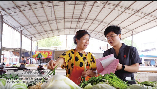 法官在塔水鎮(zhèn)農(nóng)貿(mào)市場向商戶宣傳法律知識