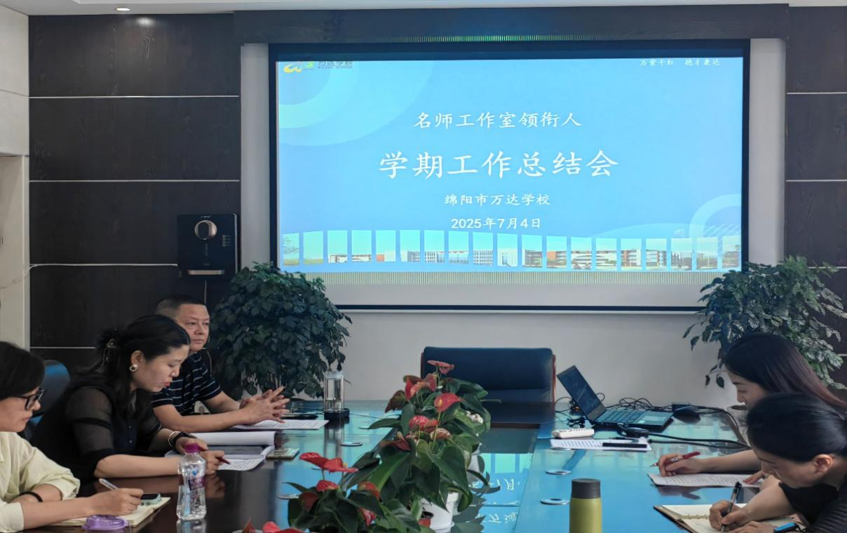 為了全面總結(jié)工作成效,凝聚發(fā)展共識,明確未來方向,7月4日,綿陽市萬達(dá)學(xué)校教科室組織召開了以“厚植沃土促成長 名師領(lǐng)航啟新程”為主題的2025年春校級名師工作室學(xué)期總結(jié)會。該校黨支部書記任明琨、副校長陳林蓉、教科室主任劉麗娟及七位工作室領(lǐng)銜人齊聚一堂,共同總結(jié)學(xué)期工作。