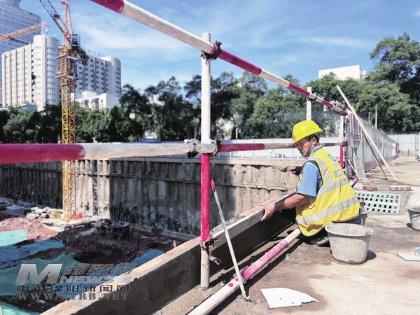 檢查人員現(xiàn)場看到,工人們正沿著基坑邊砌防水擋邊。“下大雨時,能一定程度阻隔水流向施工基坑里。”現(xiàn)場工人說。