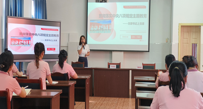 黨課洗禮強(qiáng)信念。6月30日上午,該園園長于全芝以《貫徹落實(shí)中央八項(xiàng)規(guī)定精神》為主題講授專題黨課,強(qiáng)調(diào)教師需以“言行作則”為育人基準(zhǔn),從政策落地、師德踐行、幼兒示范三個(gè)維度,筑牢教育初心。她指出:“教師的舉手投足皆是幼兒成長的‘活教材’,需以‘嚴(yán)以修身’的標(biāo)準(zhǔn)守護(hù)教育凈土。”