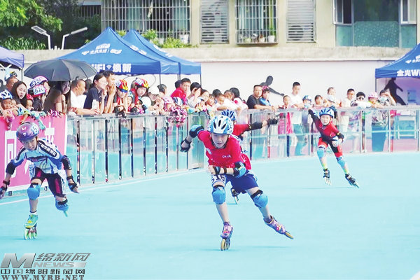 7月12日,在梓潼文昌第一小學(xué)校輪滑賽場,綿陽市第八屆運動會青少年組速度輪滑比賽上演“速度與激情”。