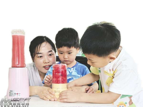 在安州暑期托管班,廚房小能手上線。小朋友們圍在操作臺榨西瓜汁、拌冰粉,小手忙不停。“雙職工終于不用焦慮啦!”家長廖海婷的話,道出100個家庭的心聲。
