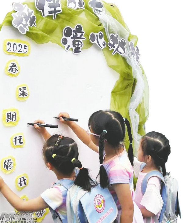 經(jīng)開區(qū)暑托班開在企業(yè)門口,讓新就業(yè)勞動者帶娃上班兩不誤。老師帶娃從生活場景中學(xué)寫作,讓日常觀察化為生動文字。還有科學(xué)實(shí)驗(yàn)冒泡泡、書法課揮毫潑墨,羅沐鑫小朋友說:“連續(xù)3年都想來!”