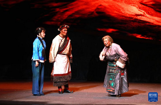 當(dāng)日,由陜西省戲曲研究院創(chuàng)排的秦腔《紅河谷》在西安首演。該劇根據(jù)同名電影改編,以二十世紀(jì)初的雪域高原為時(shí)空背景,演繹了漢藏兒女生死相依和并肩抗戰(zhàn)的故事。