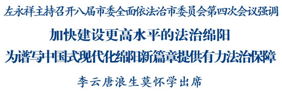 綿陽新聞網(wǎng)訊 7月14日,八屆市委全面依法治市委員會(huì)第四次會(huì)議召開,省委常委、副省長、市委書記左永祥主持會(huì)議并講話。他強(qiáng)調(diào),要深入學(xué)習(xí)貫徹習(xí)近平法治思想,全面落實(shí)黨中央決策部署和省委工作要求,加快建設(shè)更高水平的法治綿陽,為譜寫中國式現(xiàn)代化綿陽新篇章提供有力法治保障。
