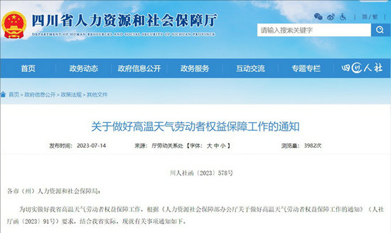 7月14日,四川省氣象局發(fā)布消息,盆地階段性高溫天氣持續(xù),局地氣溫將達(dá)40℃以上。高溫天氣下,該如何保障勞動(dòng)者權(quán)益?近日,四川省人力資源社會(huì)保障廳發(fā)布關(guān)于做好高溫天氣勞動(dòng)者權(quán)益保障工作的通知,強(qiáng)調(diào)要充分認(rèn)識(shí)高溫天氣對(duì)勞動(dòng)者特別是環(huán)衛(wèi)工人、快遞員、外賣(mài)員等戶(hù)外作業(yè)勞動(dòng)者帶來(lái)的危害,把保護(hù)勞動(dòng)者生命安全擺在首位,加大工作力度,采取有效措施維護(hù)好高溫天氣下勞動(dòng)者合法權(quán)益,全力保障勞動(dòng)者生命安全和身體健康。