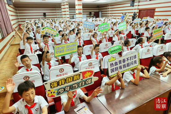 舞臺上,情景劇《記憶里的“兩彈一星”》重現(xiàn)了朱光亞、錢學(xué)森等科學(xué)家突破重重阻礙歸國的歷史瞬間;觀眾席上,學(xué)生們自發(fā)舉起“以我青春礪劍”的標(biāo)語,讓國防教育的意義變得具體可感。