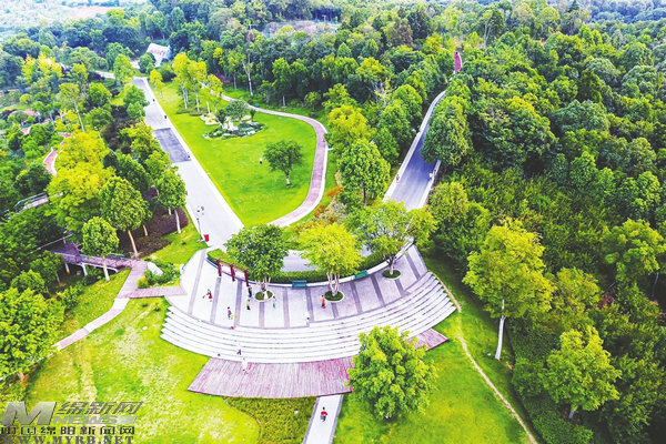 日新公園內(nèi)的共享綠地面積約13000平方米,包括彩虹慢行步道串聯(lián)起的疏林棧道、陽光草坪等,沿途設(shè)有健身設(shè)施、兒童樂園、中醫(yī)藥植物園科普區(qū)等,周邊廊亭環(huán)繞、風(fēng)景優(yōu)美,為市民游客提供集運動、娛樂、休閑為一體的友好空間。