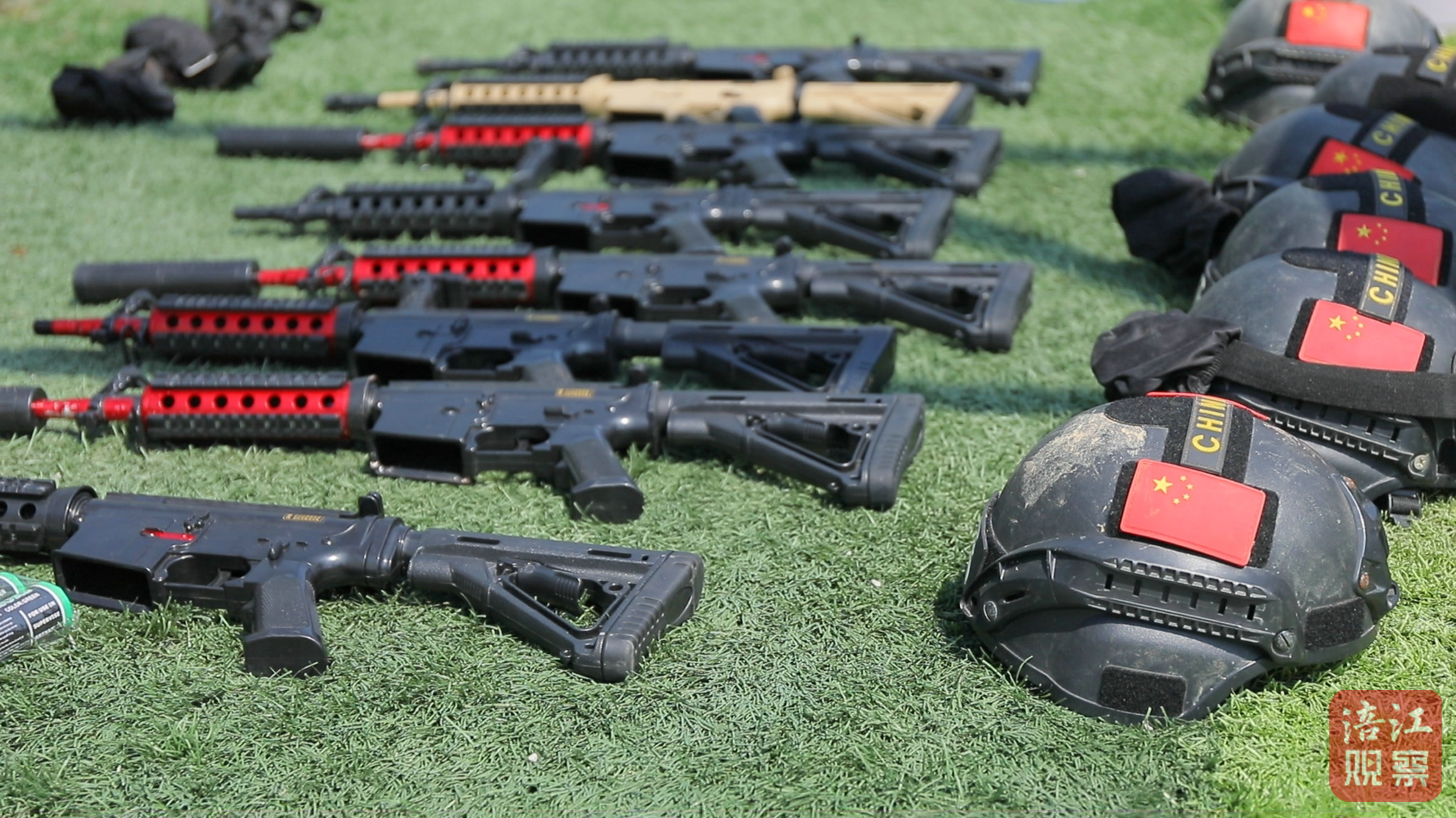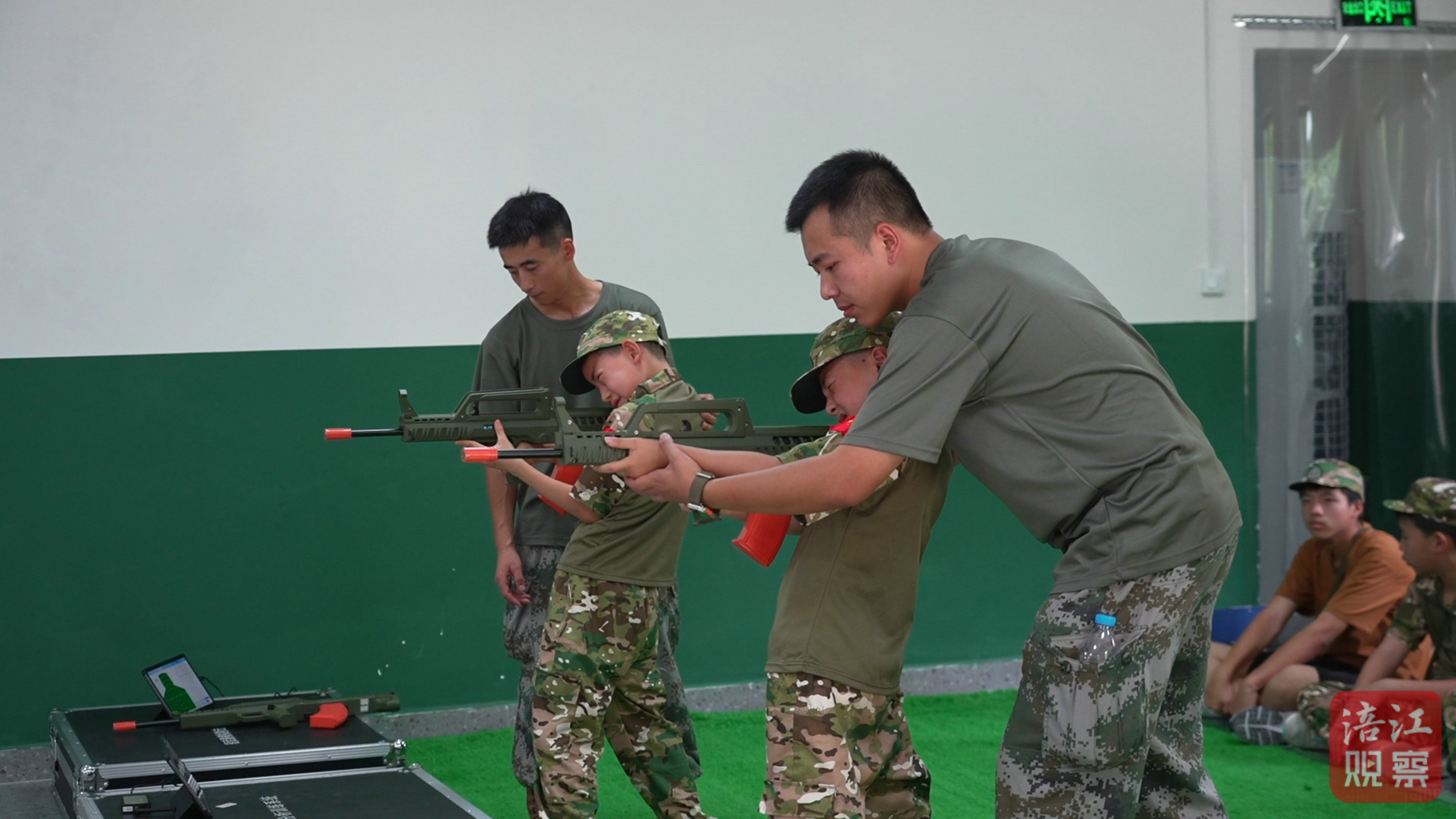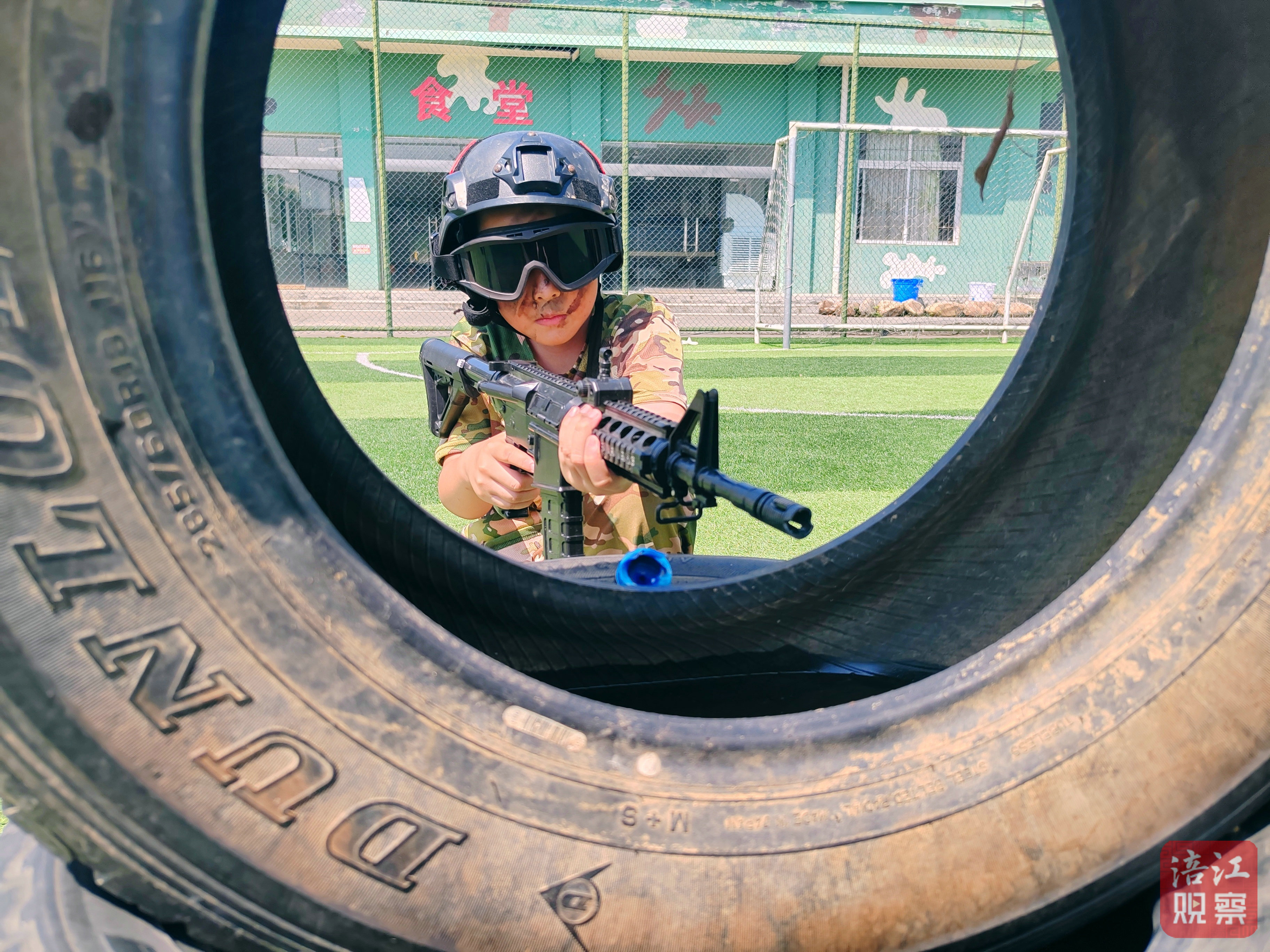 在迷彩涂裝的訓(xùn)練樓頂端,孩子們體驗(yàn)了繩降;在一幕幕煙塵滾滾的“戰(zhàn)場(chǎng)”中,孩子們又饒有興趣地玩起了CS模擬對(duì)抗戰(zhàn)。