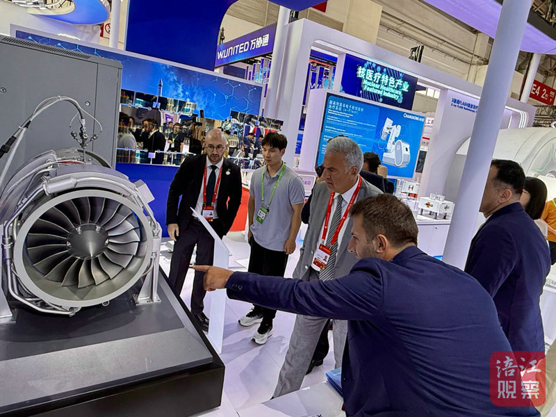 在商業(yè)航天特色產(chǎn)業(yè)展區(qū),就集中展出了天儀衛(wèi)星模型、發(fā)動機全流程參數(shù)測試系統(tǒng)等商業(yè)航天核心產(chǎn)品,吸引了不少中外觀眾紛紛拍照留念。