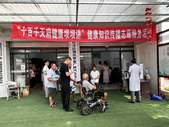 綿陽新聞網(wǎng)訊 為積極響應上級部門深化健康素養(yǎng)促進行動的號召,進一步夯實基層公共衛(wèi)生服務網(wǎng)絡,有效提升轄區(qū)居民健康素養(yǎng)水平和自主防病能力,2025年7月15日上午,綿陽經(jīng)開區(qū)塘汛街道社區(qū)衛(wèi)生服務中心聯(lián)合綿陽市第三人民醫(yī)院、綿陽市萬江眼科醫(yī)院組成的9人義診小隊走進塘汛街道金廣村,開展了“一村一月一義診”及“十百千天府健康壩壩講”系列健康知識傳播活動。本次活動將接地氣的“壩壩文化”與實用健康科普深度融合,讓專業(yè)醫(yī)療知識“飛入尋常百姓家”。