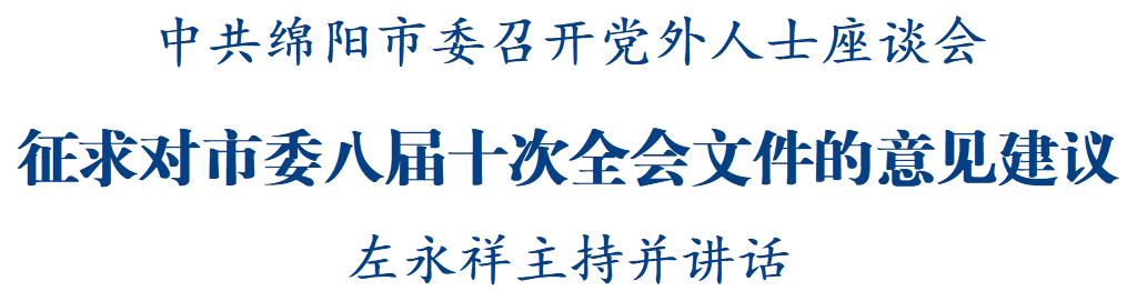綿陽新聞網訊 中共綿陽市委八屆十次全會舉行前夕,市委召開黨外人士座談會,就全會文件聽取各民主黨派市(工)委會、市工商聯負責人和無黨派人士代表的意見建議。省委常委、副省長、市委書記左永祥主持座談會并講話。