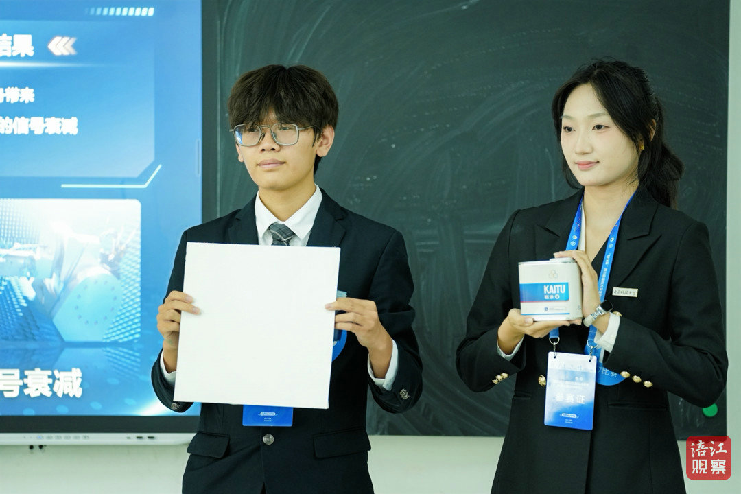 上午9時,青春的活力與創(chuàng)新的激情在校園里涌動。一間間答辯室內,參賽選手們狀態(tài)各異:有的腳步輕快、神采奕奕地步入賽場;有的在場外合影留念,以緩解緊張情緒;還有的正抓緊最后時間演練答辯演講稿。