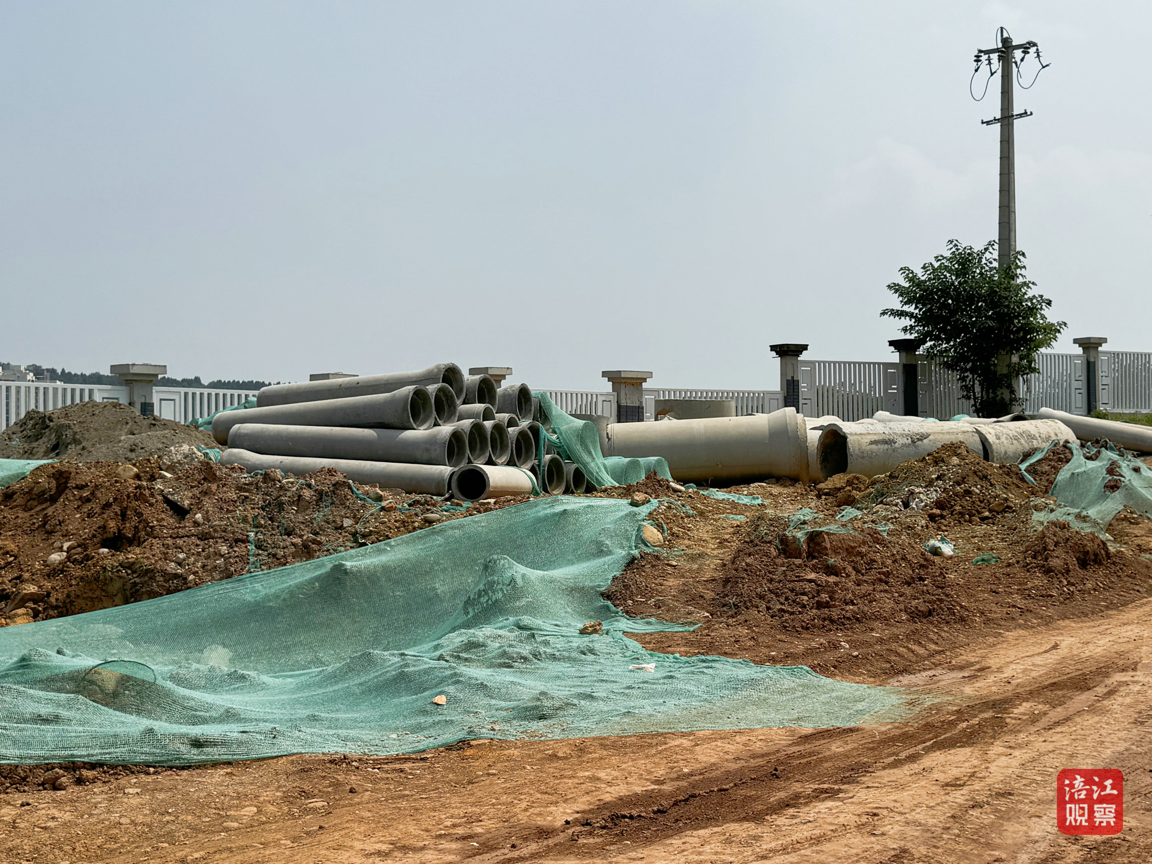 7月16日,記者在施工現(xiàn)場(chǎng)看到,圍擋處開(kāi)了一道門(mén),一條近200米長(zhǎng)的黃土路直通施工區(qū)域,管道等材料隨意堆放在路邊,旋挖機(jī)正在橋梁處轟鳴作業(yè)?,F(xiàn)場(chǎng)的施工公告顯示,該施工項(xiàng)目為磨秀路道路改造提升工程和磨秀路跨草溪河橋梁工程,原計(jì)劃工期為2023年8月至2024年10月,但如今橋梁主體仍未完工,道路也未硬化。