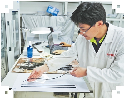 簡牘發(fā)掘、保護和修復是一場與時間的賽跑。“剛出土的竹簡軟得像面條,非常脆弱,接觸空氣后極易氧化變黑,可能導致文字瞬間消失。”蔣魯敬說,在龍會河楚墓發(fā)掘中,他們采用“整體提取法”:以薄塑料板作“手術刀”,木托板為“擔架”,將整堆簡牘托起,并快速送往荊州文物保護中心。