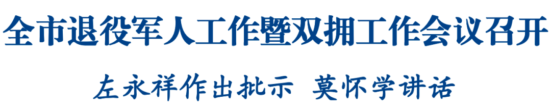 7月23日,全市退役軍人工作暨雙擁工作會(huì)議召開(kāi)。省委常委、副省長(zhǎng)、市委書(shū)記左永祥作出批示,對(duì)做好全市退役軍人和雙擁工作提出要求。市委副書(shū)記、政法委書(shū)記莫懷學(xué)出席會(huì)議并講話(huà)。