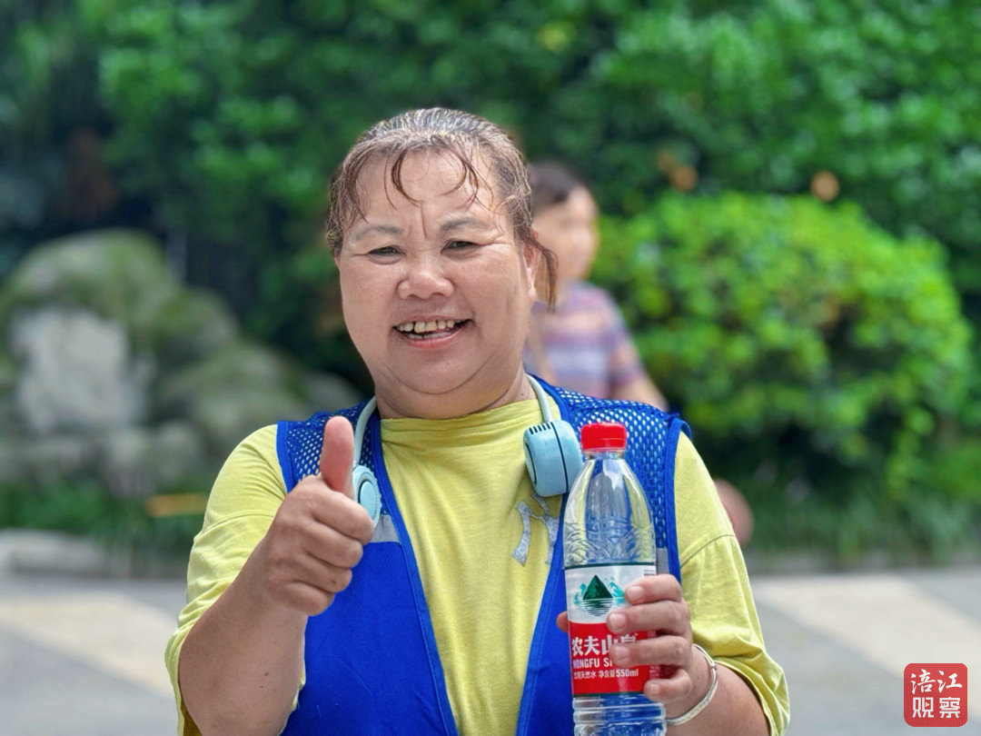 62歲的環(huán)衛(wèi)工人茍菊英剛結(jié)束片區(qū)清掃,額頭的汗珠順著臉頰淌進衣領(lǐng)。她從崗?fù)すぷ魅藛T手中接過冰鎮(zhèn)礦泉水,擰開瓶蓋“咕咚”喝下了一大口。