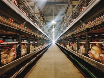 智能化改造重塑養(yǎng)殖模式。如今,在鹽亭縣高渠鎮(zhèn)界牌村的四川圣羅蘭農業(yè)科技有限公司蛋雞擴繁基地,自動化設備隨處可見,室內通過自動化環(huán)境控制系統(tǒng)調節(jié)溫度、濕度、通風情況,自動霧化消毒除塵。種雞住著“上下鋪”,吃著定時定量投喂的過濾凈化水和定制配方飼料,糞便由糞帶收集定時處理,剛產下的新鮮蛋順著籠網自動滾入蛋帶。