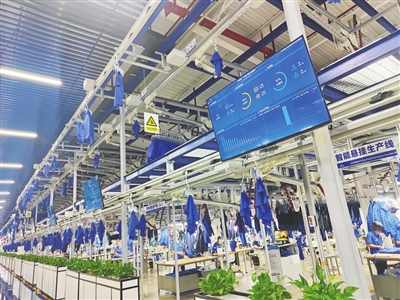 走進(jìn)園區(qū)的5G+智慧工廠,這里的物料機器人來回穿梭自動補料,自動裁床精準(zhǔn)裁剪布料,巡檢機器人用“火眼金睛”揪出瑕疵品……電子屏幕上還滾動顯示著實時生產(chǎn)進(jìn)度、達(dá)成率等數(shù)據(jù)。安吉納體育用品有限公司總經(jīng)理夏太洪透露,園區(qū)引進(jìn)了智能倉儲、智能裁剪、智能模板、智能充絨、智能吊掛等一系列先進(jìn)設(shè)備,相比傳統(tǒng)生產(chǎn)方式極大提高了生產(chǎn)效率,一件服裝只用1-3個小時就可以實現(xiàn)出庫。本次投產(chǎn)的一期項目新建廠房及研發(fā)設(shè)計中心4.5萬平方米、全智能成衣生產(chǎn)線20條,年產(chǎn)能將達(dá)1000萬件。