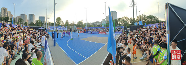 夏日的炎熱阻擋不了群眾的熱情。18時,距比賽還有1個半小時,觀眾們陸續(xù)排隊(duì)進(jìn)場,敲打充氣棍、揮舞旗幟,將賽前緊張氛圍“拉滿”。19時30分,隨著裁判的哨子聲響,籃球場上的戰(zhàn)火一觸即燃,“經(jīng)”彩無限隊(duì)率先進(jìn)入狀態(tài),打出6比0的開局。隨后,“經(jīng)”彩無限隊(duì)?wèi){借籃板優(yōu)勢繼續(xù)擴(kuò)大比分,以33比11領(lǐng)先進(jìn)入第二節(jié)。