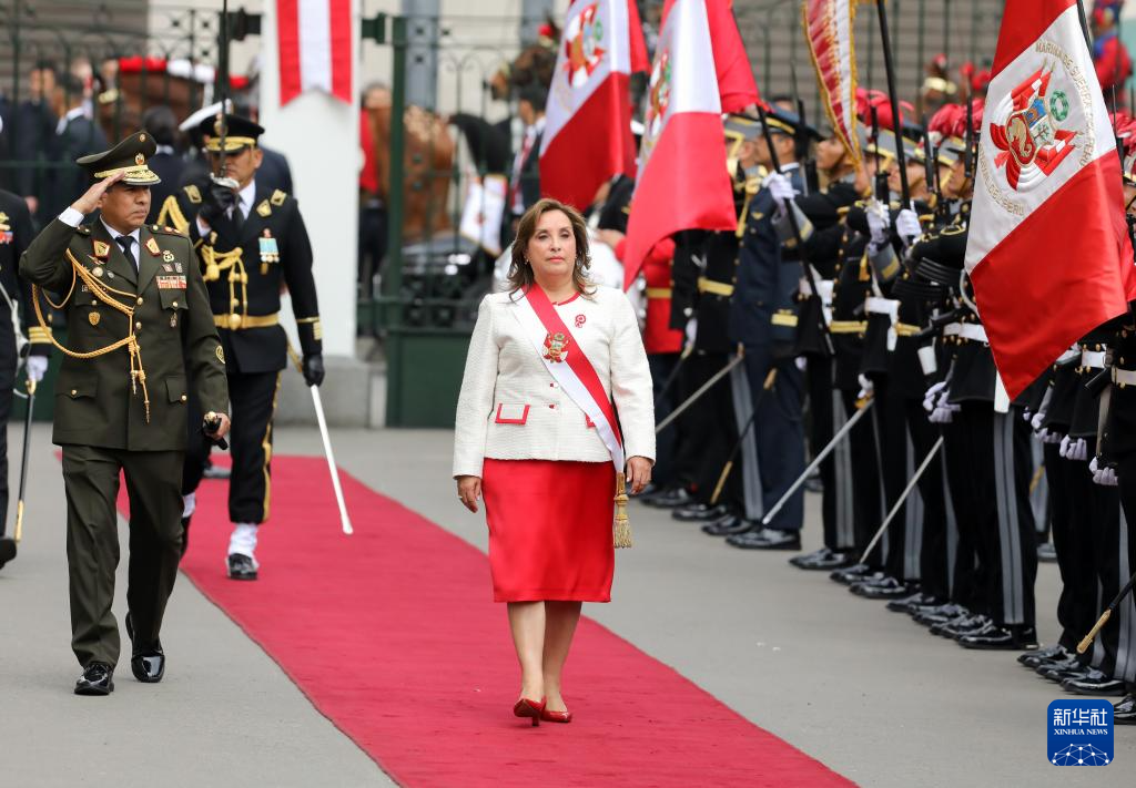 7月28日,秘魯總統(tǒng)博魯阿爾特在利馬發(fā)表全國(guó)講話前經(jīng)過(guò)儀仗隊(duì)。新華社發(fā)(瑪麗安娜·巴索攝)