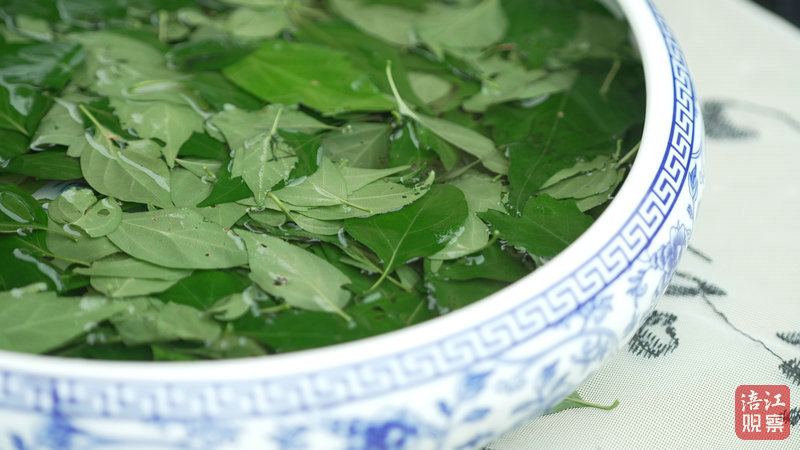 民宿負責人陳遠航向記者詳細展示了制作工藝:“我們嚴格遵循古法,選用晨露未干時采摘的黃荊嫩葉,經(jīng)山泉水沖洗、鹽水浸泡、石臼搗爛、細紗過濾等十二道工序,最后冷藏定型。”