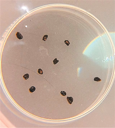 在第三單元“稻作文明”,可以看到考古出土的碳化水稻、粟、黍等植物種子和一塊古稻田遺跡標(biāo)本。2020年,在寶墩遺址田角林地區(qū),考古人員發(fā)現(xiàn)了4500年前的水稻田遺跡,這是成都平原乃至長江上游迄今所知最古老的水稻田。通過浮選法研究發(fā)現(xiàn),碳化植物種子中稻谷的數(shù)量占一半以上,說明水稻已成為寶墩先民主要的糧食作物。