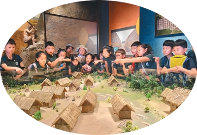 “古蜀尋春季”研學(xué)活動現(xiàn)場,孩子們參觀寶墩遺址博物館。