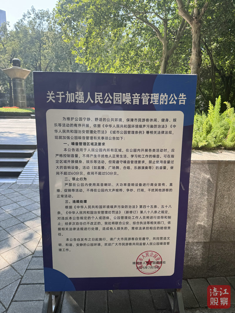 人民公園管理處相關(guān)負(fù)責(zé)人告訴記者,近期,公園已發(fā)布降噪公告,并與市公安特巡警在早晚高峰及節(jié)假日聯(lián)合行動(dòng),及時(shí)勸阻音量超標(biāo)行為。