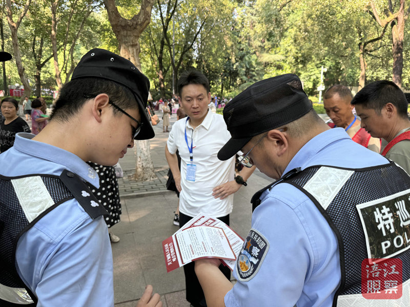 7月29日上午,記者在公園看到,特巡警與公園志愿者正在聯(lián)合勸導(dǎo)。在宣傳了噪音污染防治相關(guān)法規(guī)后,晨練樂隊(duì)很快調(diào)低了音量。
