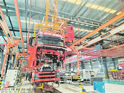 綿陽新聞網(wǎng)訊 近日,記者走進(jìn)中國重汽綿陽基地生產(chǎn)車間,入眼的是一派熱火朝天的景象:裝配線上,工人們熟練地安裝駕駛室、裝配輪胎,行吊車來回穿梭,機(jī)械臂精準(zhǔn)焊接,一臺臺重型卡車在流水線上逐漸成型;車間里,機(jī)器聲隆隆,焊花四濺,工人們熟練地?fù)]舞著手中的工具,干勁十足。