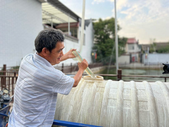 衛(wèi)有安在池塘邊打水。新華社記者馬曉潔 攝