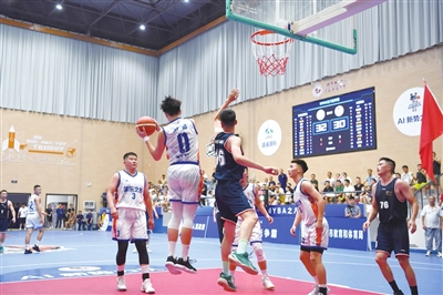 場上,球員激烈對抗,比分你追我趕;場下,球迷們搖旗吶喊,啦啦隊熱情洋溢。他們?yōu)槊恳恢蜿牸佑椭?,為球員的一個漂亮進球加油喝彩,也為一個個沒有打進的球遺憾嘆息。比賽間隙,小球迷們上場秀球技,精彩表演充滿活力和動感,圍觀群眾高呼:痛快!過足了一把“籃球癮”。