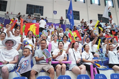 帶娃來看球的覃女士看得格外投入,“今天專門帶娃娃來看比賽,很有意義!”她笑著說,“娃娃平時總看動畫片,不如來現(xiàn)場感受這股拼勁兒。我覺得我們綿陽可以多開展這些活動,帶娃的暑假就該這么過——在吶喊聲里學堅持,這種教育更生動!”