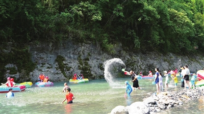 游客在羅浮山漂流戲水