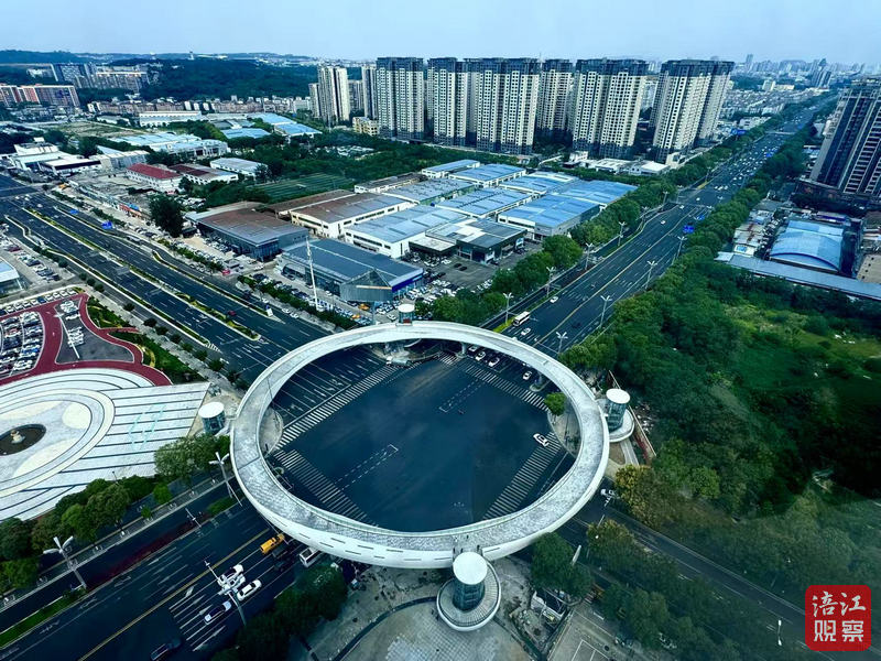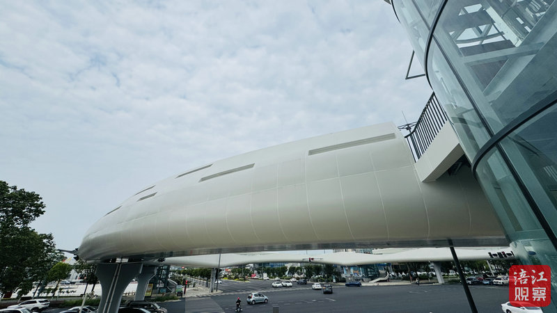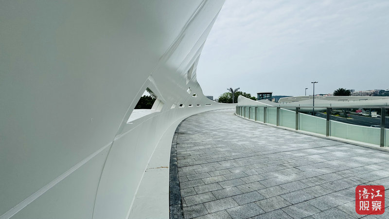 記者注意到,這座天橋的造型也很講究,外側(cè)的金屬側(cè)欄呈起伏狀,“因?yàn)榈靥幦瓍^(qū)域,天橋環(huán)形的橋體取意涪江蜿蜒的水脈,起伏式的鋁板幕墻則模擬了綿陽層疊山巒。”劉軍說。