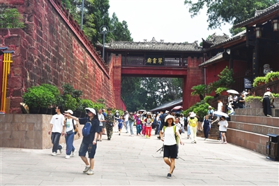 游客在七曲山游覽