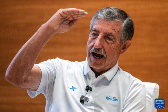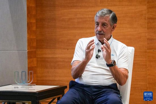 8月5日,國際世界運(yùn)動(dòng)會(huì)協(xié)會(huì)(IWGA)主席何塞·佩魯雷納接受專訪。 新華社記者 李博 攝