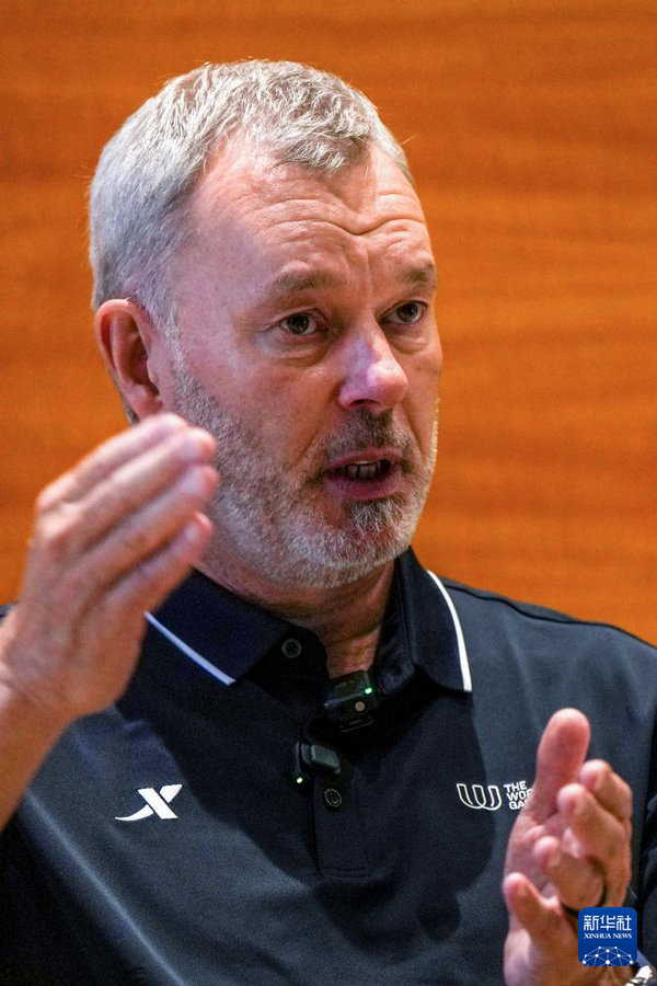8月5日,國際世界運(yùn)動(dòng)會(huì)協(xié)會(huì)(IWGA)首席執(zhí)行官阿希姆·高索接受專訪。 新華社記者 李博 攝