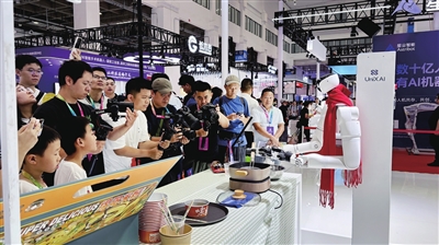 優(yōu)理奇人形機(jī)器人化身“一日店長”,靈巧雙臂現(xiàn)場烹制綿陽米粉。