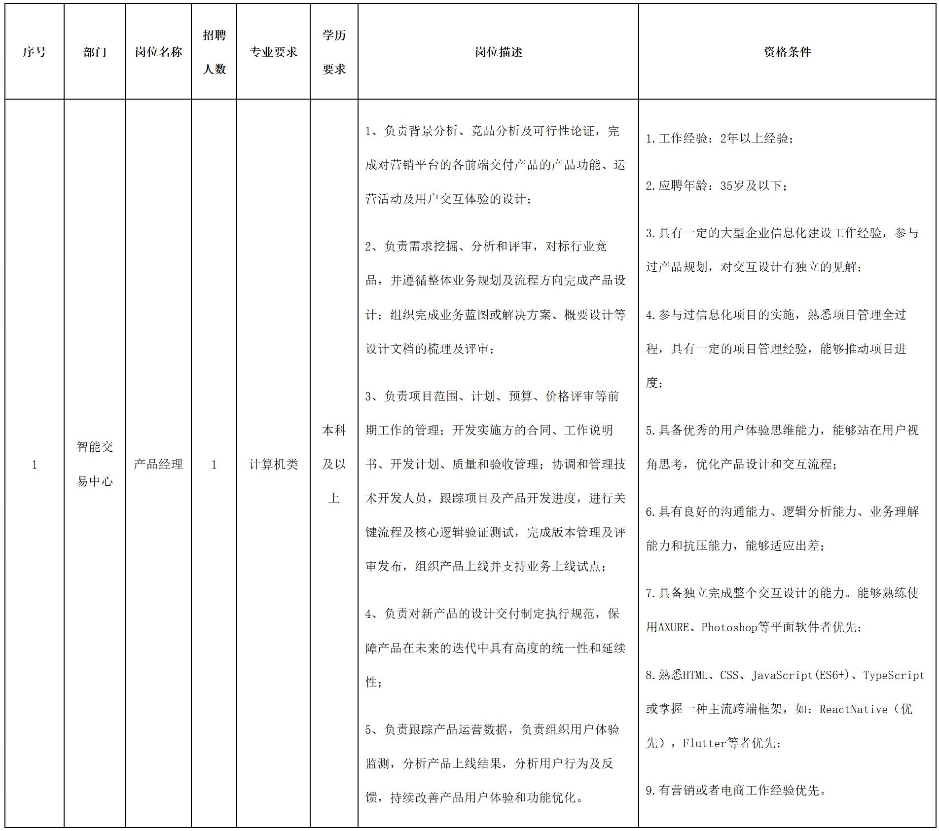 長(zhǎng)虹·美菱中國區(qū)營(yíng)銷總部是長(zhǎng)虹集團(tuán)旗下負(fù)責(zé)智慧家電產(chǎn)品營(yíng)銷的管理平臺(tái),主要經(jīng)營(yíng)長(zhǎng)虹&美菱品牌的電視、冰箱、洗衣機(jī)、空調(diào)等智慧家電,公司現(xiàn)有7000余名員工,全國設(shè)立24個(gè)營(yíng)銷分部,是面向線上、線下全渠道統(tǒng)一的運(yùn)營(yíng)和服務(wù)平臺(tái),致力于為用戶提供具有獨(dú)特價(jià)值的智慧家電產(chǎn)品。根據(jù)公司經(jīng)營(yíng)發(fā)展需要,現(xiàn)面向長(zhǎng)虹內(nèi)外部招聘以下崗位,具體招聘信息如下: