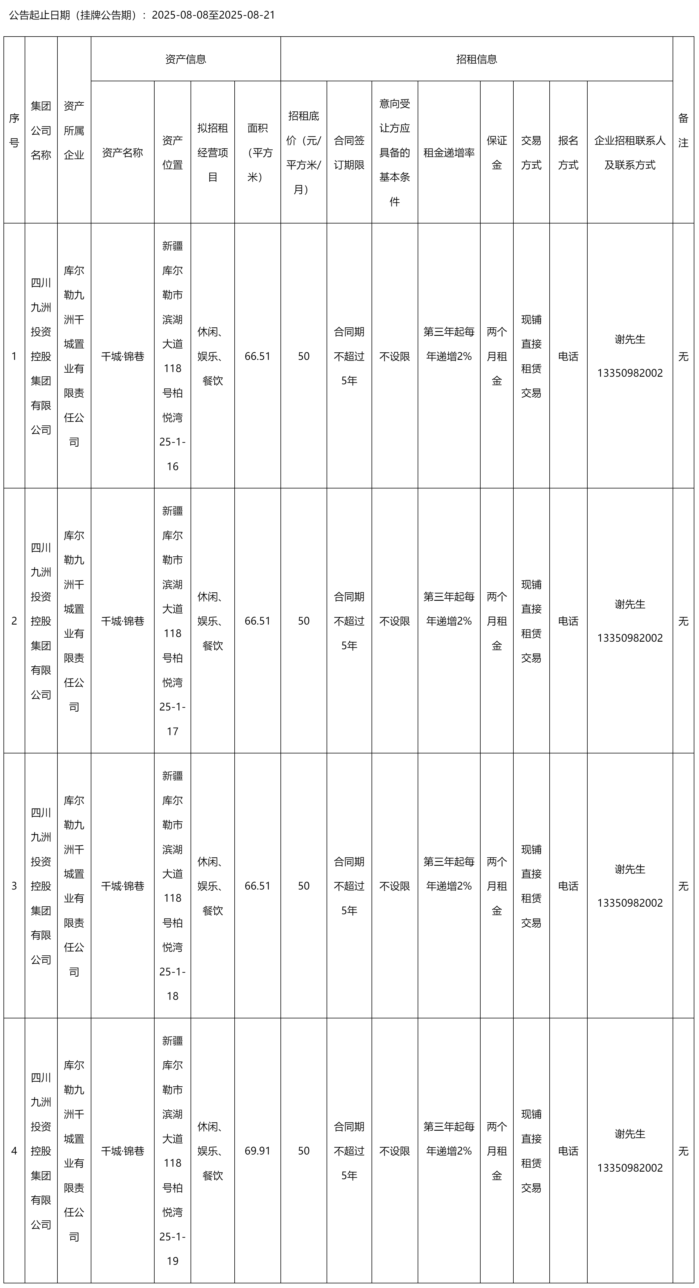 四川九洲千城商業(yè)管理有限公司庫爾勒項目部千城錦巷商鋪出租公告